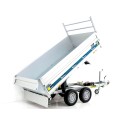 De achterwaarts kippende aanhangwagen Debon 155×305 cm 2.0t met elektro-hydraulische pomp en zijwandverhoging (BWA) is ideaal voor veelzijdige transporttaken.